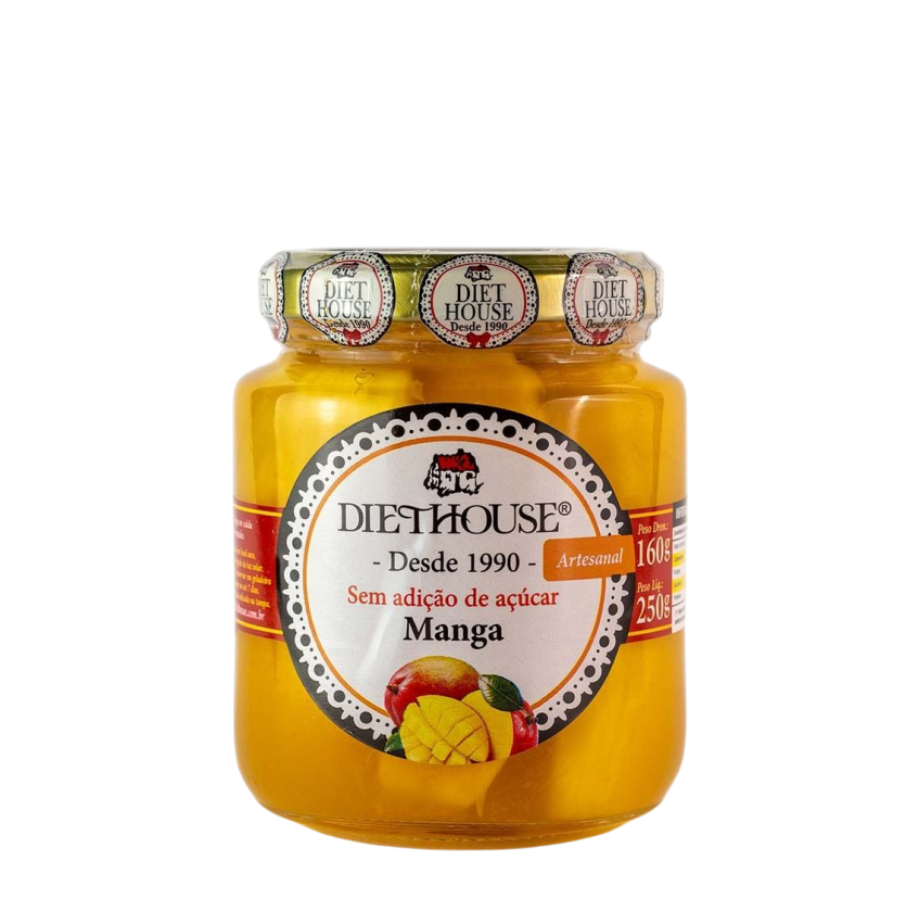 É um doce preparado com mangas maduras, cozidas lentamente em calda feita com adoçantes naturais ou com o dulçor da própria fruta.